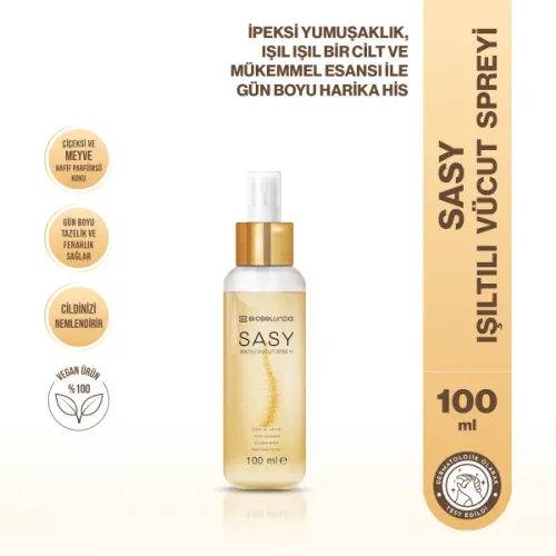 Sasy, kalitesi ve benzersiz formülü ile bilinen bir markadır. Işıltılı Vücut Spreyi, sadece bir güzellik ürünü olmanın ötesinde bir deneyim sunar. Kullanımından elde edeceğiniz ferah, canlı ve ışıltılı cilt görünümüyle estetik anlayışınızı tamamlar. Kendi tarzınızı yansıtmak ve her anı özel kılmak için Sasy Işıltılı Vücut Spreyi'nizi edinin!